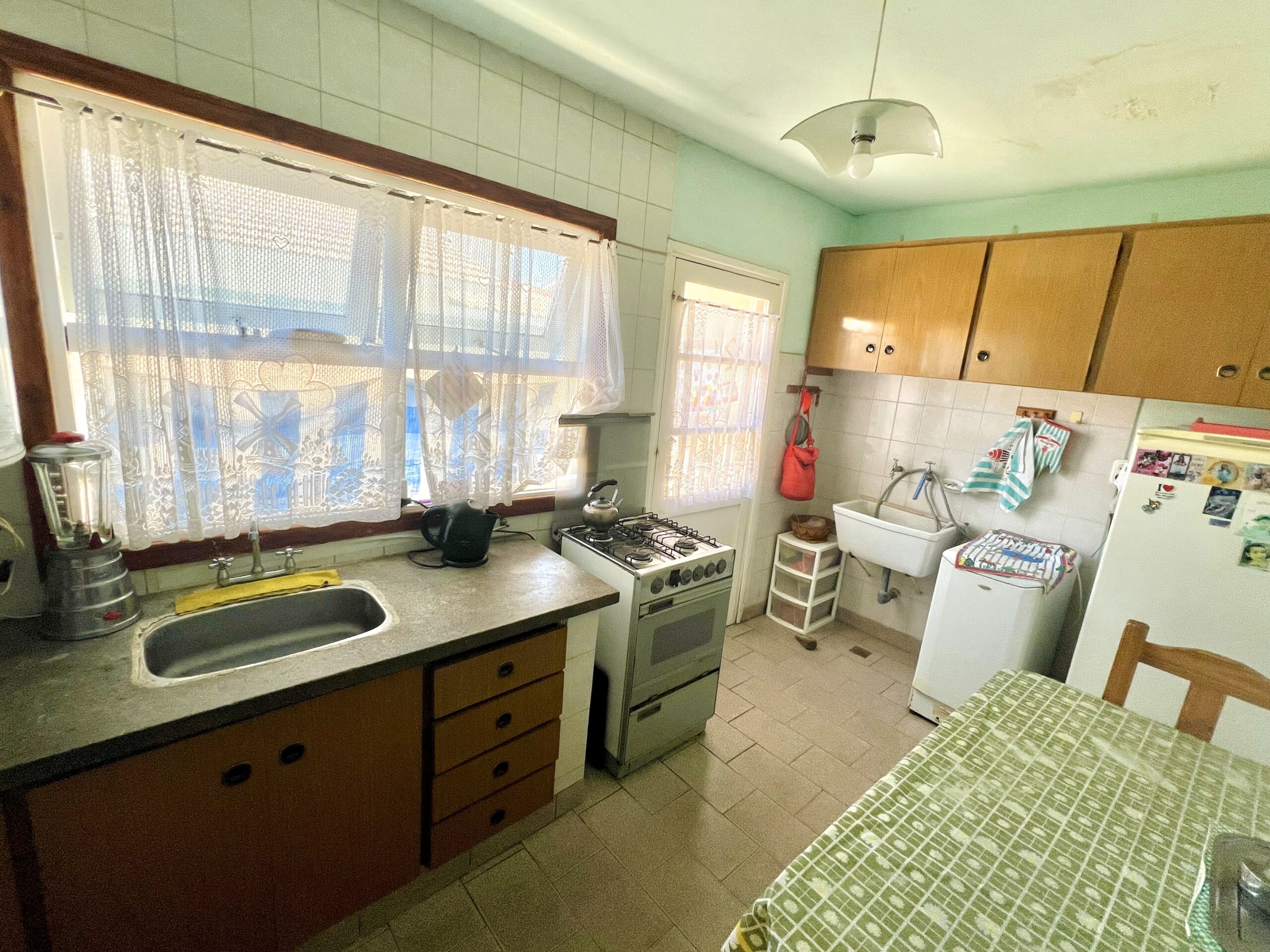 Sobre avenida 10: living- comedor, cocina. lavadero, tres dormitorios, escritorio, baño completo, patio con pequeño depósito y salida a calle trasera.