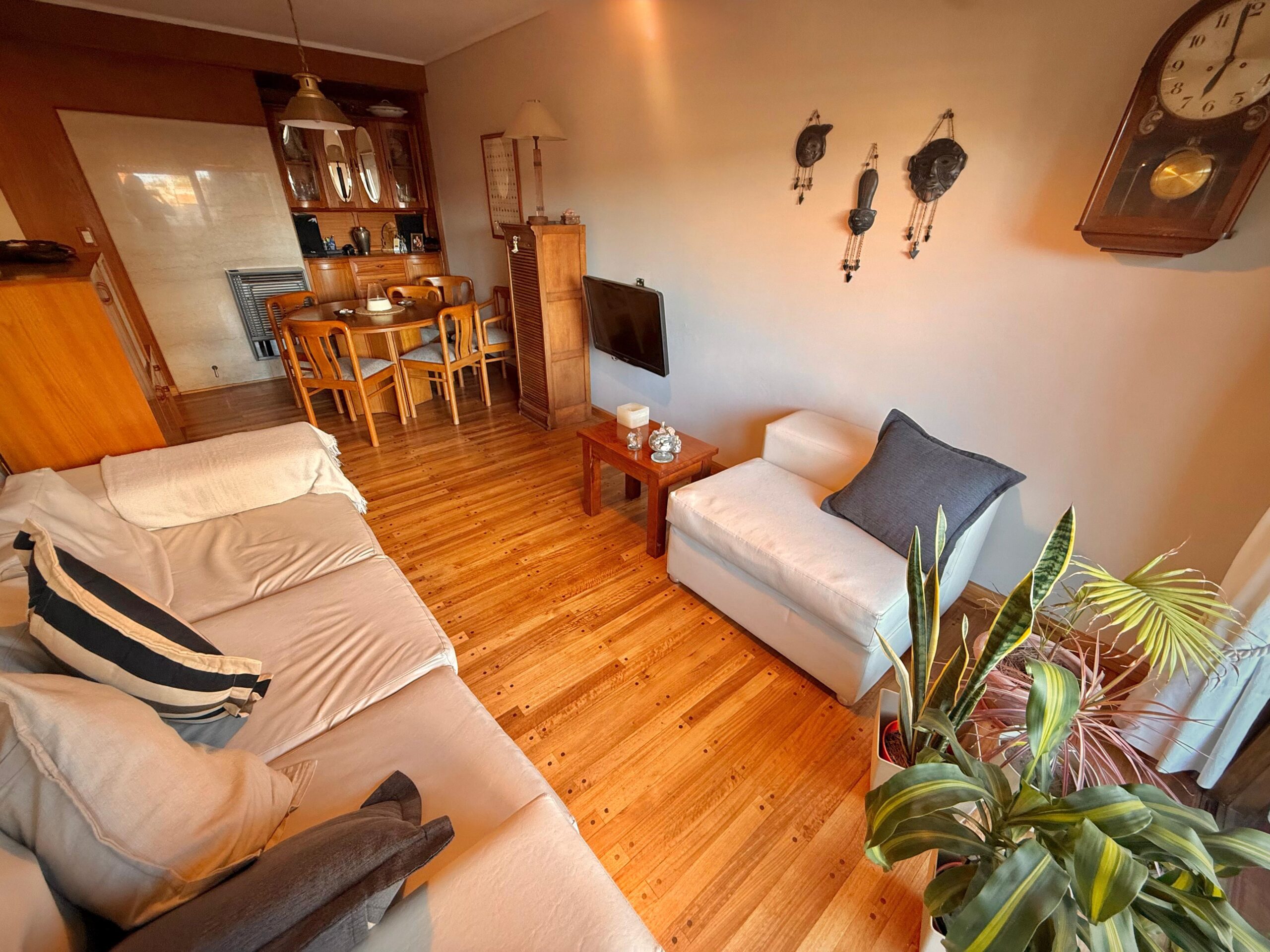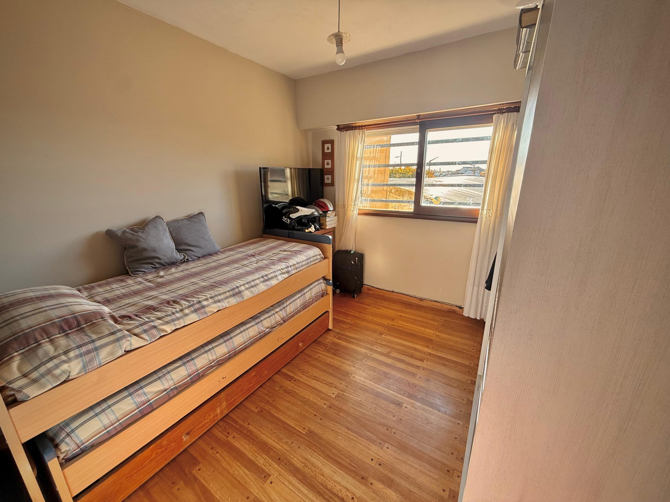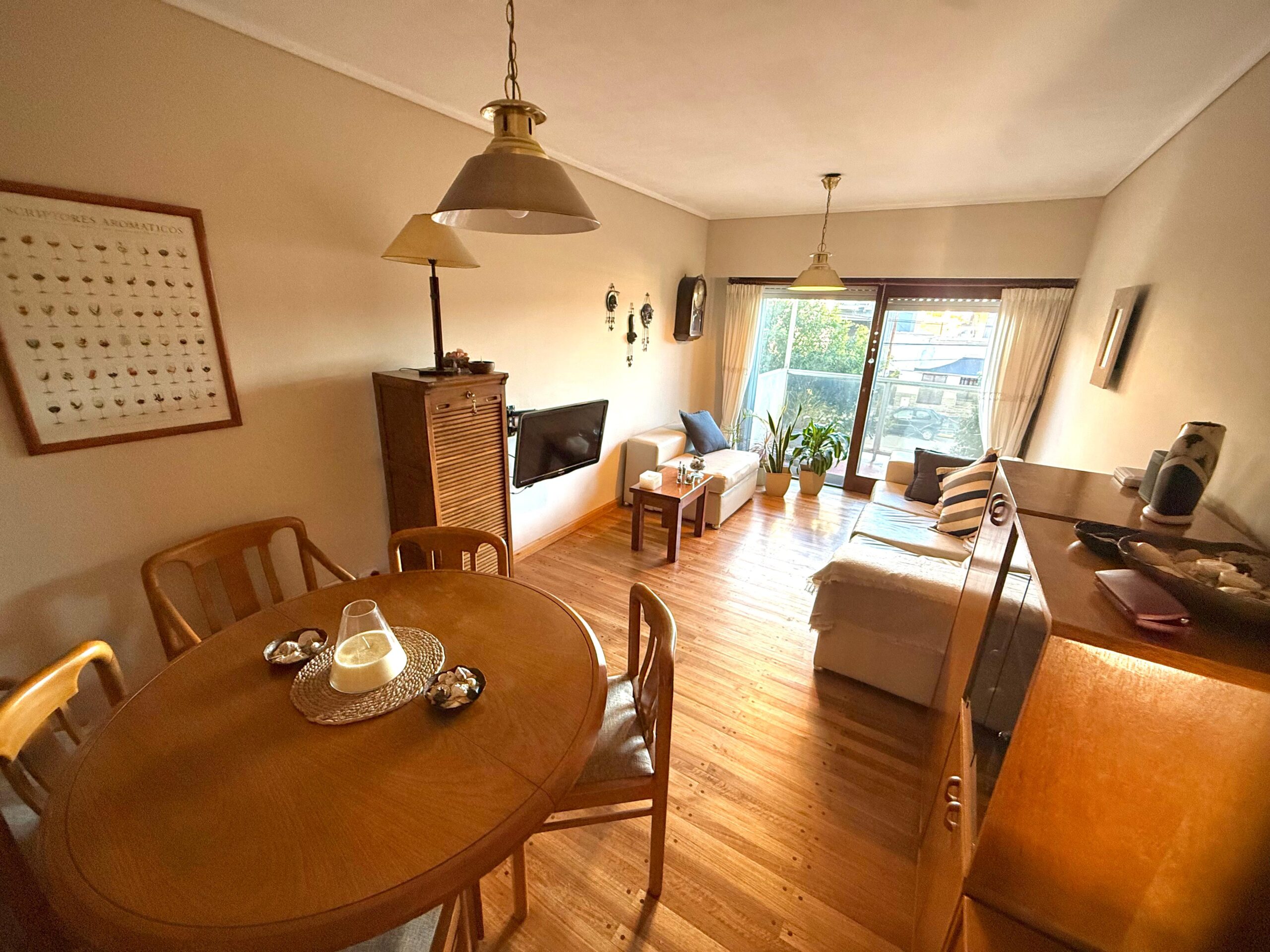 Living-comedor, cocina, lavadero, dos dormitorios, baño completo y cochera.
